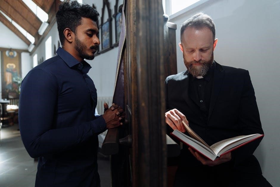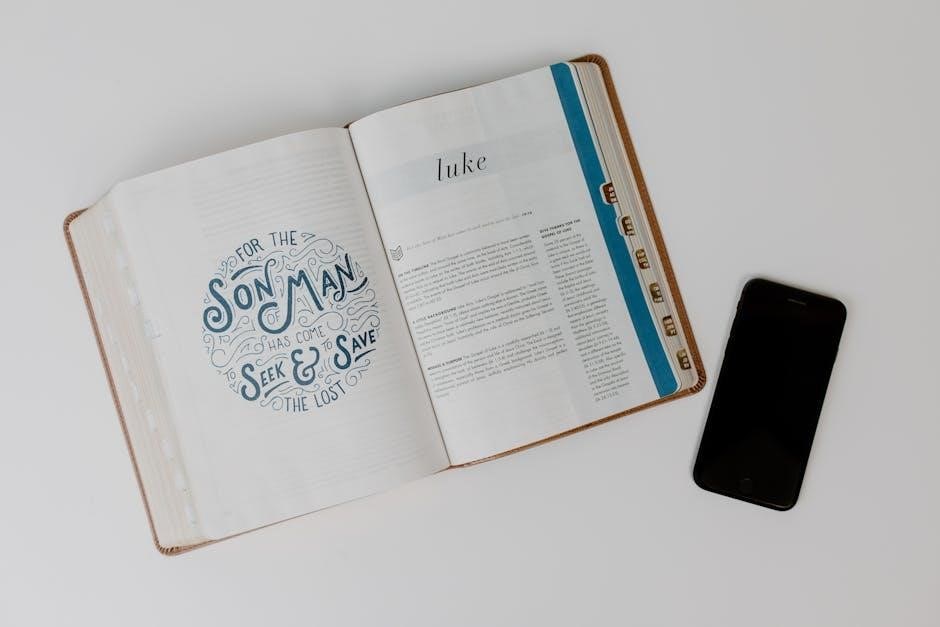 Journaling in the Bible, as inspired by the Black Bible PDF, is a powerful practice for deepening spiritual reflection and documenting one’s faith journey. By writing down verses, personal insights, and emotions, individuals can engage more intimately with scripture. This method fosters a deeper understanding of biblical teachings and their relevance to modern life. Journaling also serves as a therapeutic outlet, allowing believers to process challenges and celebrate spiritual growth. The Black Bible PDF often includes guided prompts and spaces for notation, making it easier for readers to apply biblical principles to their daily lives. This practice not only enhances personal devotion but also creates a legacy of faith for future generations, bridging the gap between ancient wisdom and contemporary experiences.